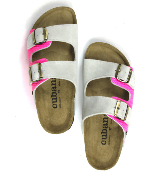 Em promoçãoSandália Cubanas em Camurça Cinza e Pele Rosa