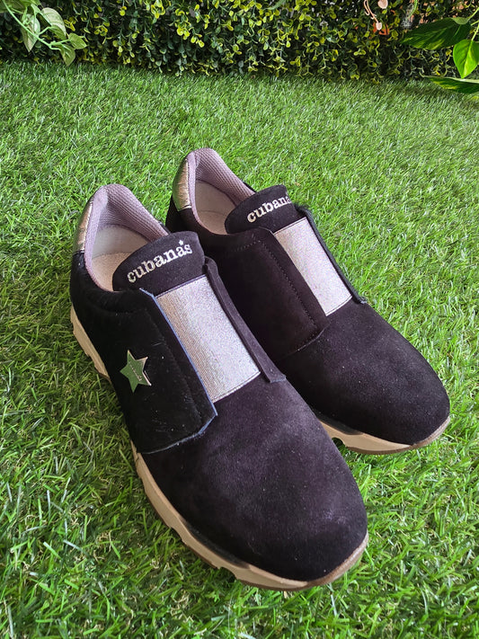 Ténis Cubanas em Camurça e Pêlo Animal Print