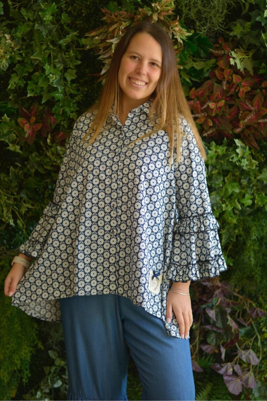 Em promoçãoTúnica Azul Flores