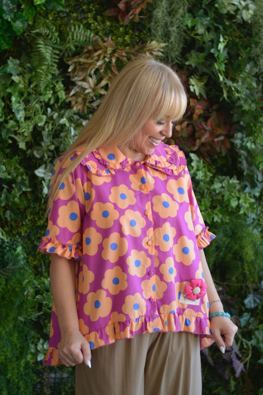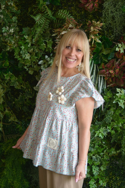 Em promoçãoTúnica Turquesa Florzinhas Vermelhas