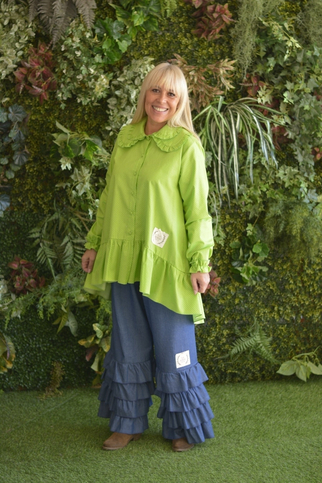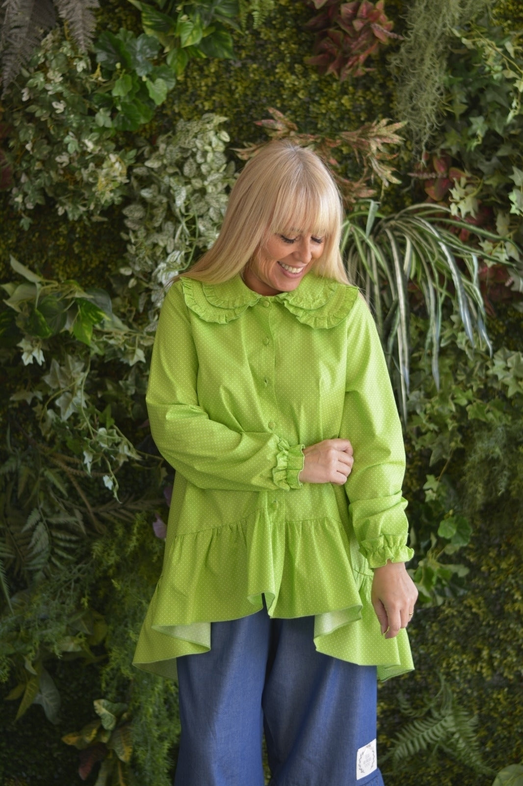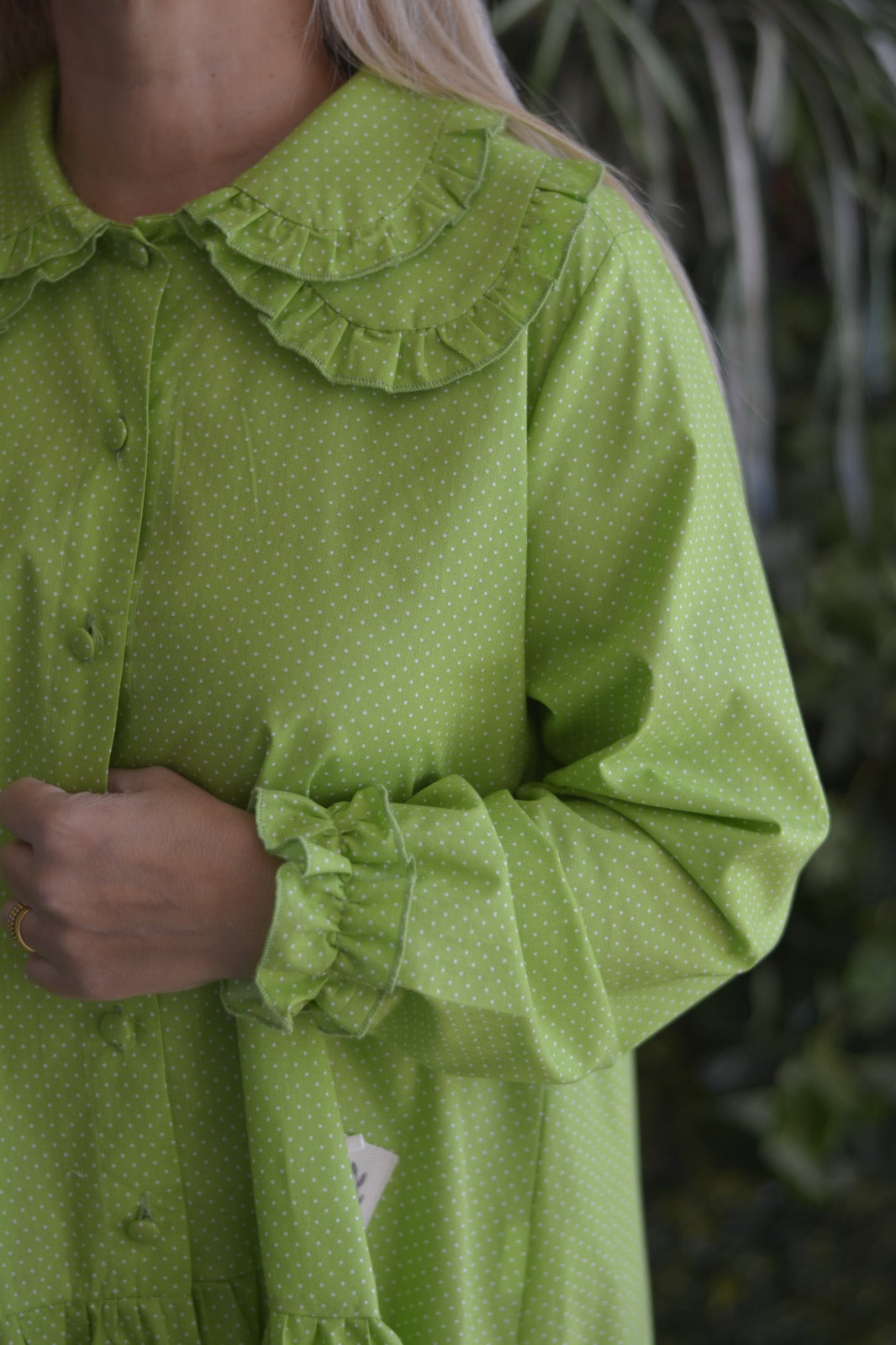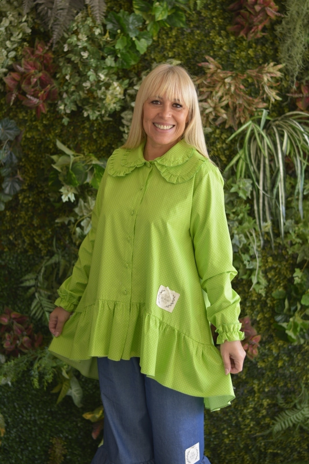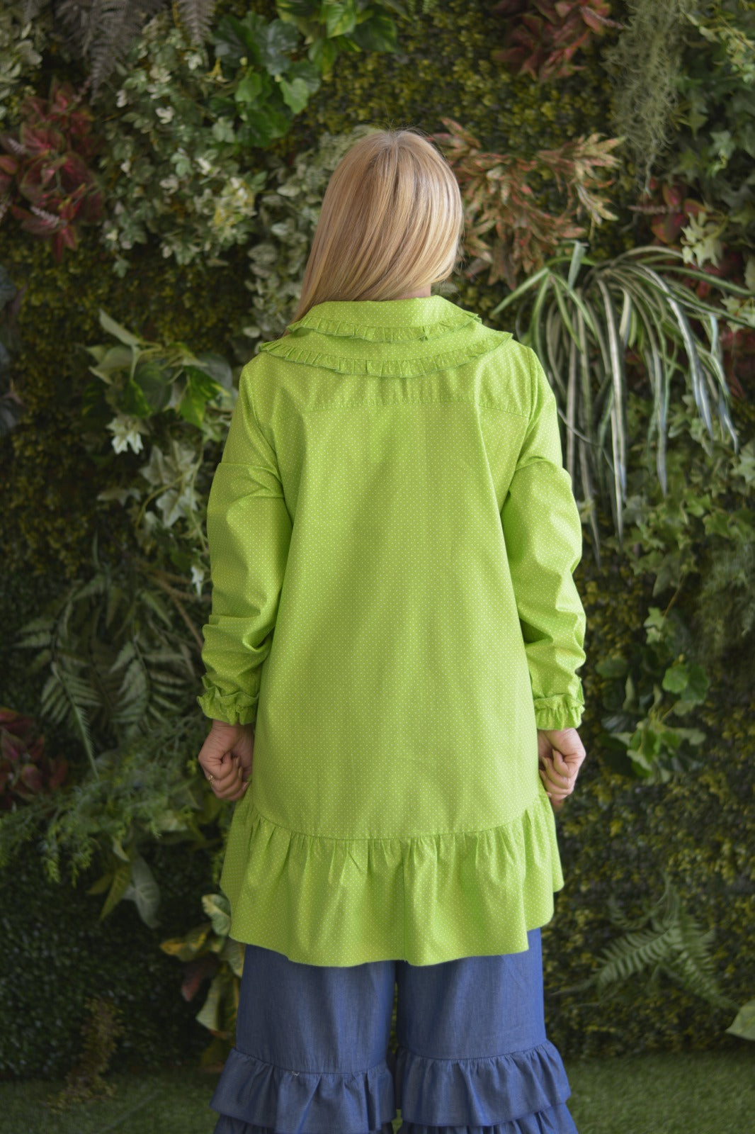 Túnica Verde Pintinhas Dupla Gola