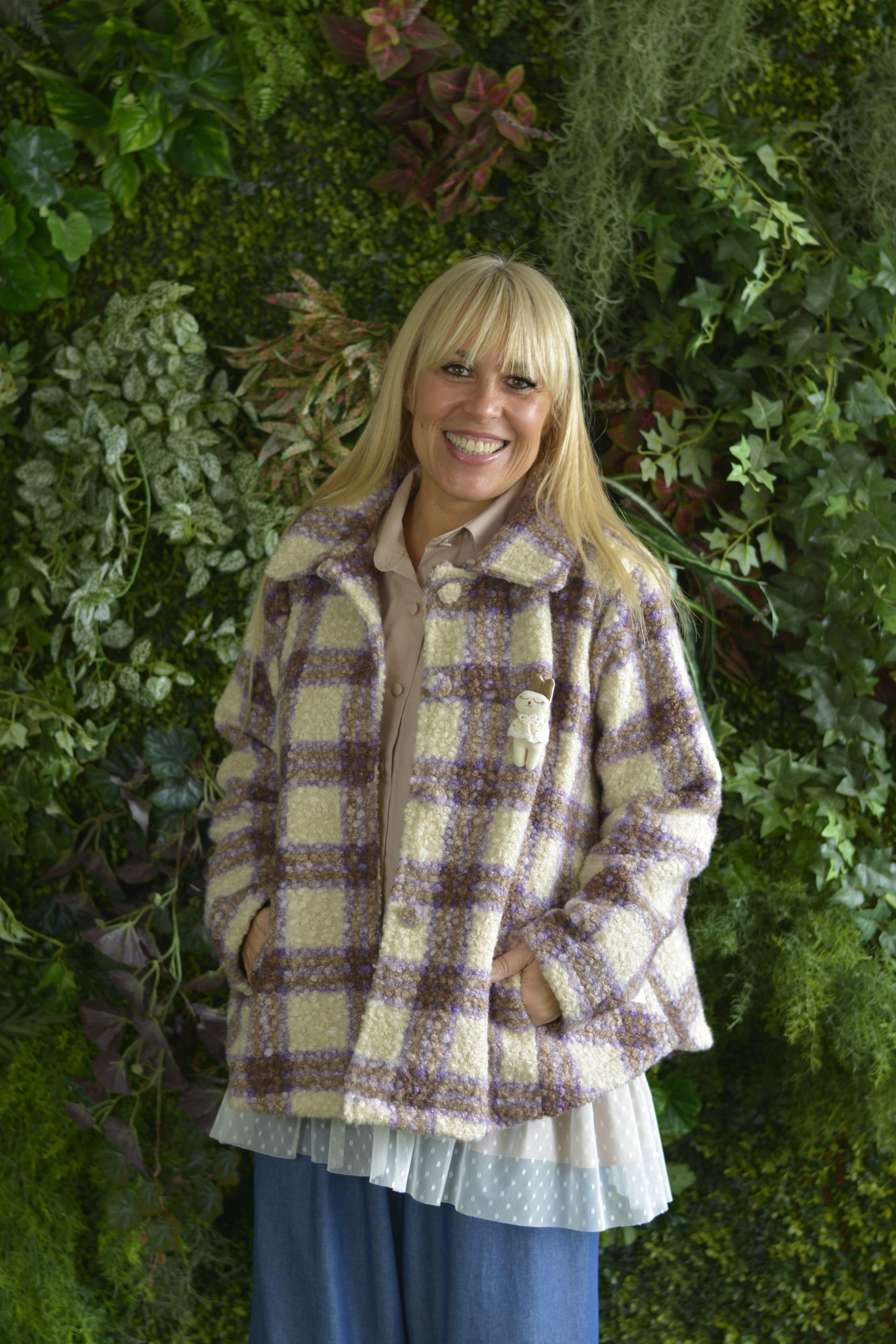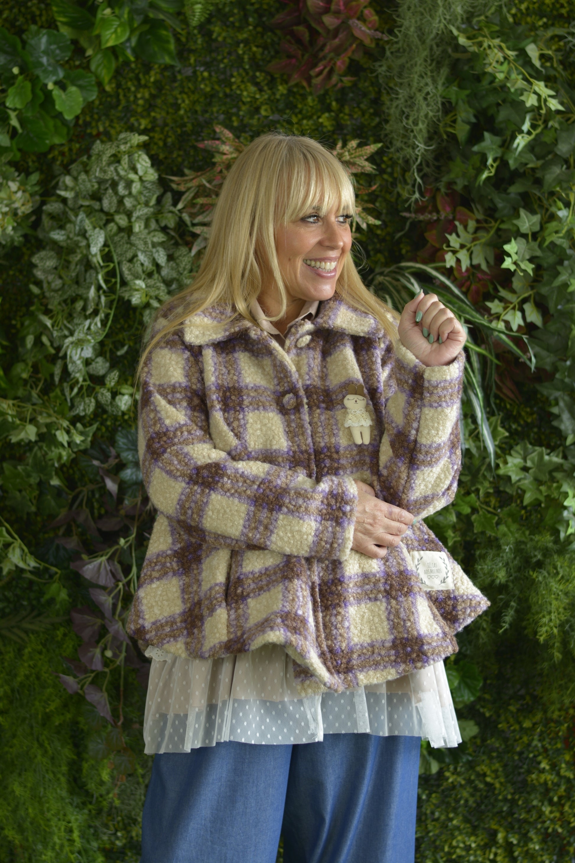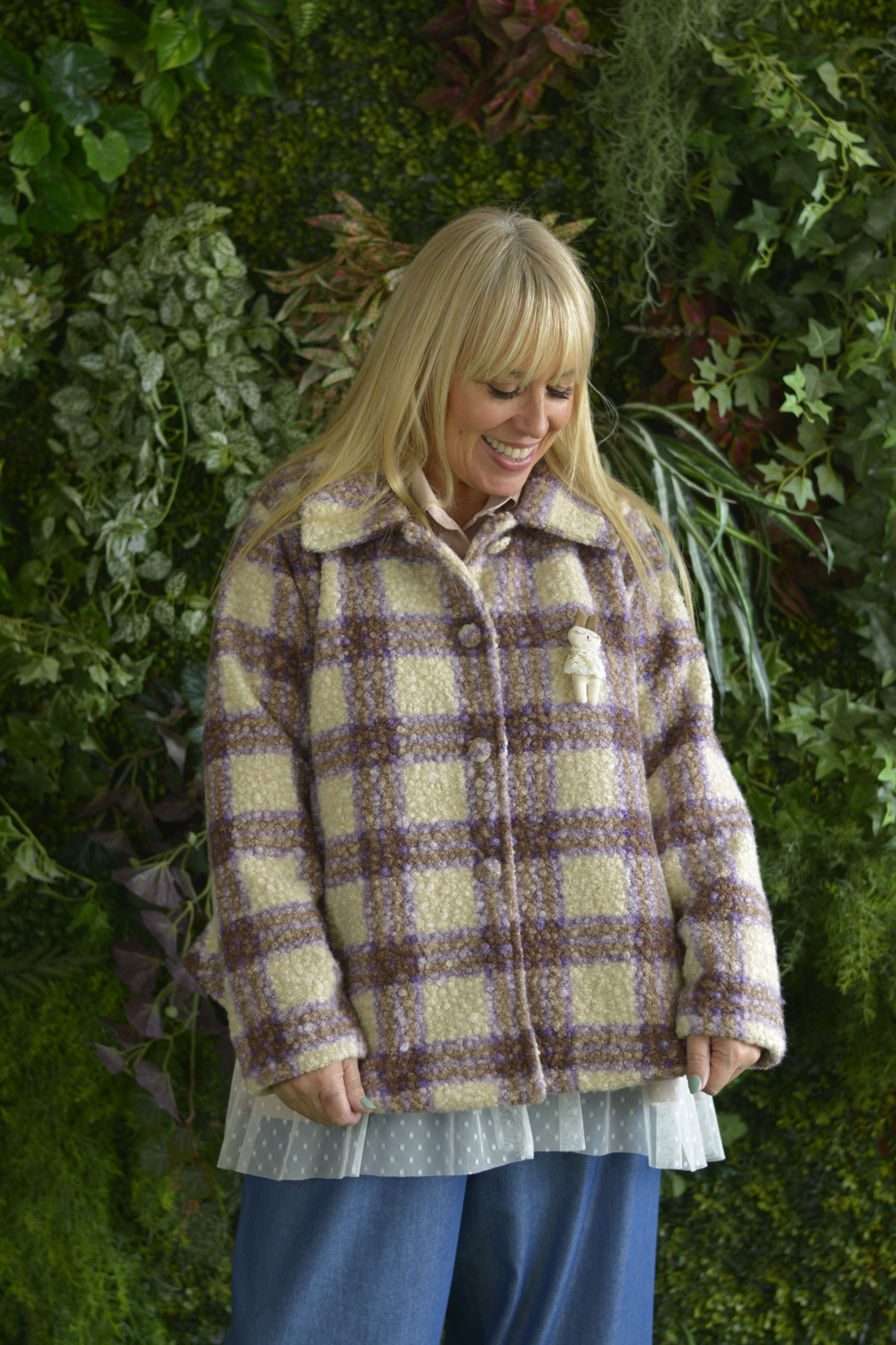 Casaco Caracul Xadrez Lilás